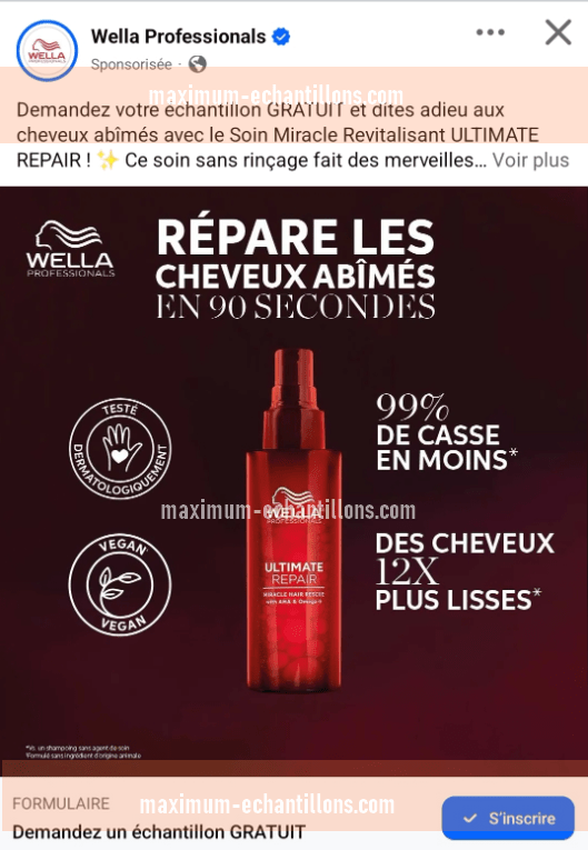 Comment obtenir votre échantillon gratuit du Soin Miracle Revitalisant ULTIMATE REPAIR Wella Professionals et ainsi tester gratuitement de ce produit ?
