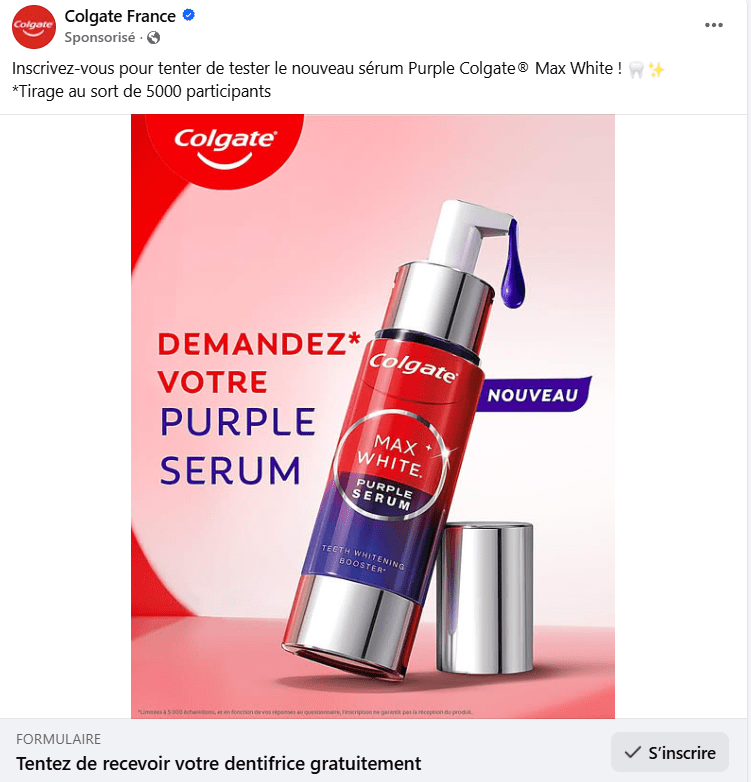 Comment tenter d’obtenir votre échantillon gratuit du Dentifrice Colgate Max White Purple Serum et ainsi tester gratuitement ce produit ?